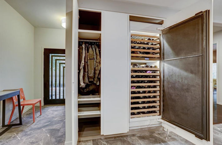 Designed for a passionate foodie, the kitchen evolved to include ample storage solutions and entry closets, seamlessly integrated to complement and match the kitchen's style.